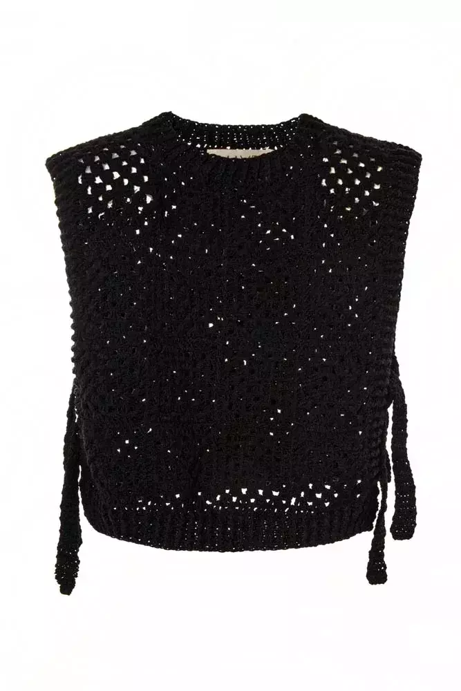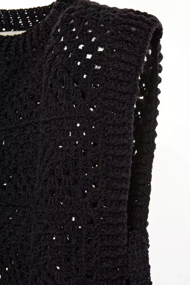 Cordillera Chaleco en punto granny crochet con lazo hecho de una fina lana Merino de 17 micras de la Patagonia.